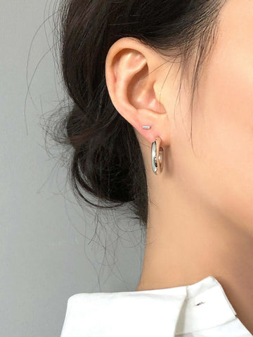 A bolder more confident hoop. With its thicker outline and brilliant silver finish, these earrings make use of stronger lines and higher light reflectivity to ensure maximum statement with modest size. Hinged for ease of use.