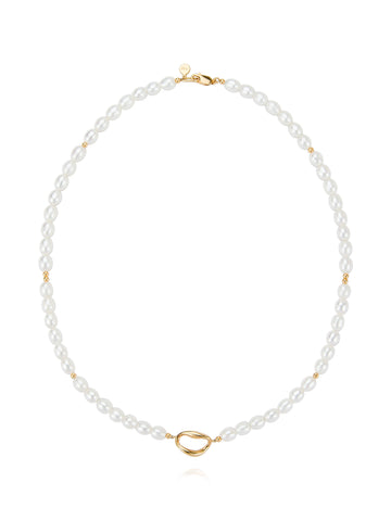 Named after an ancient Goddess of rain, the immaculate freshwater pearls of the Hyades necklace drape like beads of pure water. With silver punctuations and a naturally shaped pendant.
