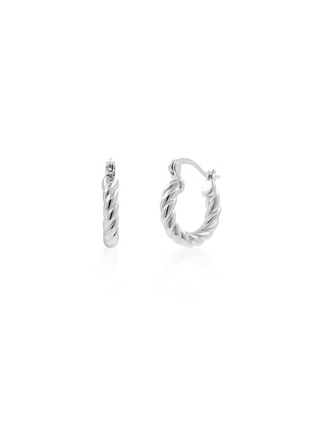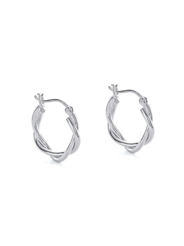 Two hoops intricately curl around each other to capture the natural beauty of a silver braid.